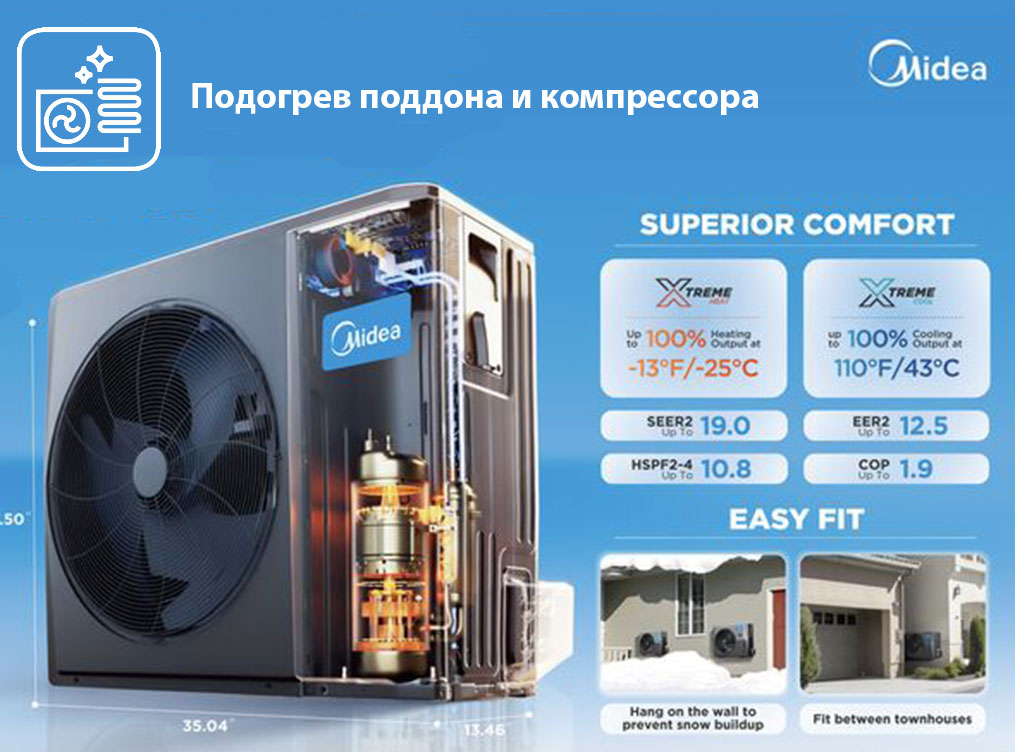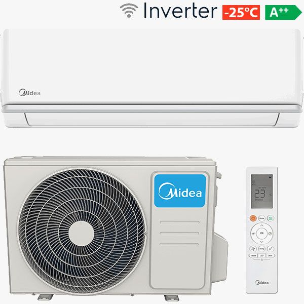 Кондиционер Midea. Инверторный компрессор Toshiba, Энергоэффективность класса А++, Работа на обогрев до -25°С, Подогрев поддона и компрессора, Низкий уровень шума 19 дБ, Wi-Fi модуль (опция 1170 грн), Фреон R32, Пр-во Гонконг, Гарантия 2 года.