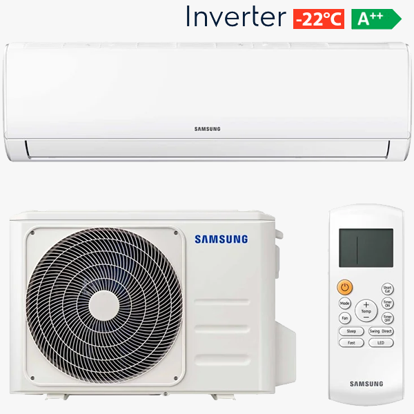 Samsung серии BASIC Inverter. Инверторный компрессор, Энергоэффективность класса А++, Работа на обогрев до -22°С. Специальные жалюзи с пластинами extra v-blades и более мощный вентилятор также способствуют более быстрому охлаждению всасываемого воздуха. Тройная технология защиты защищает компрессор и контроллер от сбоев в электросети без использования стабилизатора напряжения. Детали кондиционера имеют антикоррозионное покрытие, благодаря чему корпус и конденсор защищены от ржавления. Режим "Морской бриз". Фильтр тонкой очистки воздуха 60 Full HD. Фреон R-32. Пр-во Гонг-Конг. Гарантия 3 года и 10 лет на компрессор.